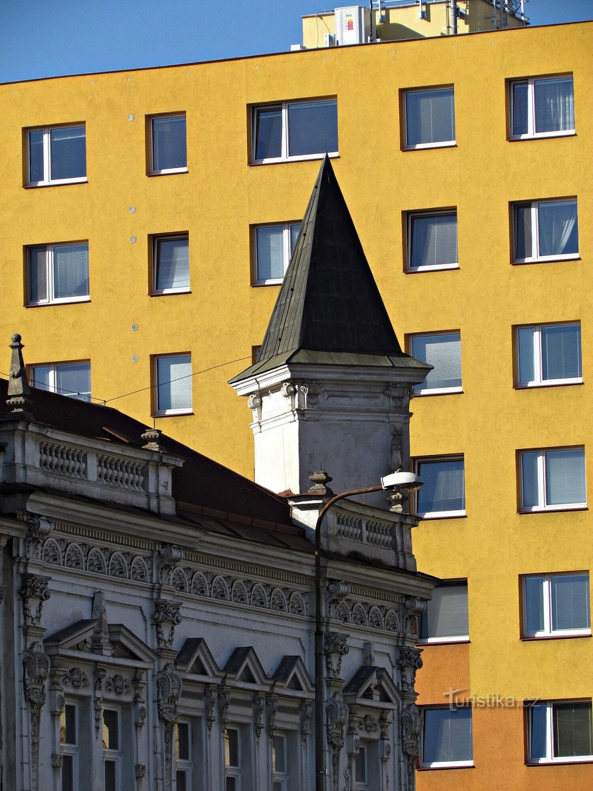 Velmi zajímavým a skoro až snovým výjevem působí pohled na zástavbu Komenského ulice u jejího průsečíku s ulicí Palackého. Hlavní dopravní tepnu lemuje blok krásných načinčaných stavení vystavěných ve stylu secesním anebo historizujícím. Tato velmi působivá připomínka „starých časů“ se táhne i po jedné straně Palackého ulice do délky asi sedmdesáti metrů a v jednom z historických domů se nachází…