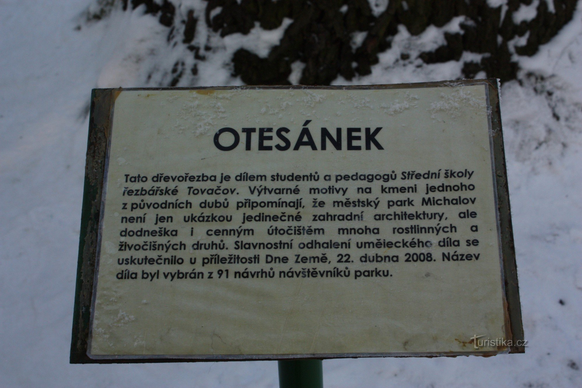 Otesánek vznikl v roce 2008 pod rukama žáků a pedagogů řezbářské školy v Tovačově.