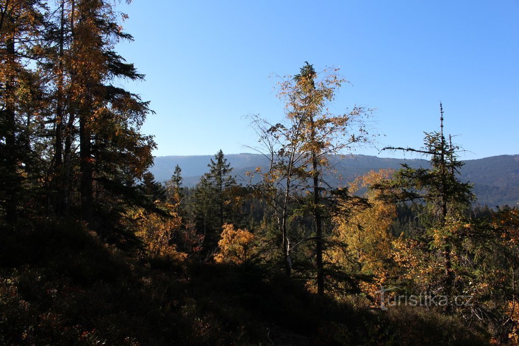 Babí léto nás vylákalo k cestě na Šumavu. Výběr padl na horu Milec ( 936 m. n. m.). Na severní straně hřebene hory je vyhlídka Liebeshöhe, ze které má být hezký výhled na hory Královského hvozdu. Jedeme vlakem ze Sušice do Klatov, kde přestupujeme na rychlík z Prahy do Železné Rudy – Alžbětína. Rychlík je přeplněný a hodně cestujících musí stát. Vystupujeme na nádraží Hamry – Hojsova Stráž a…