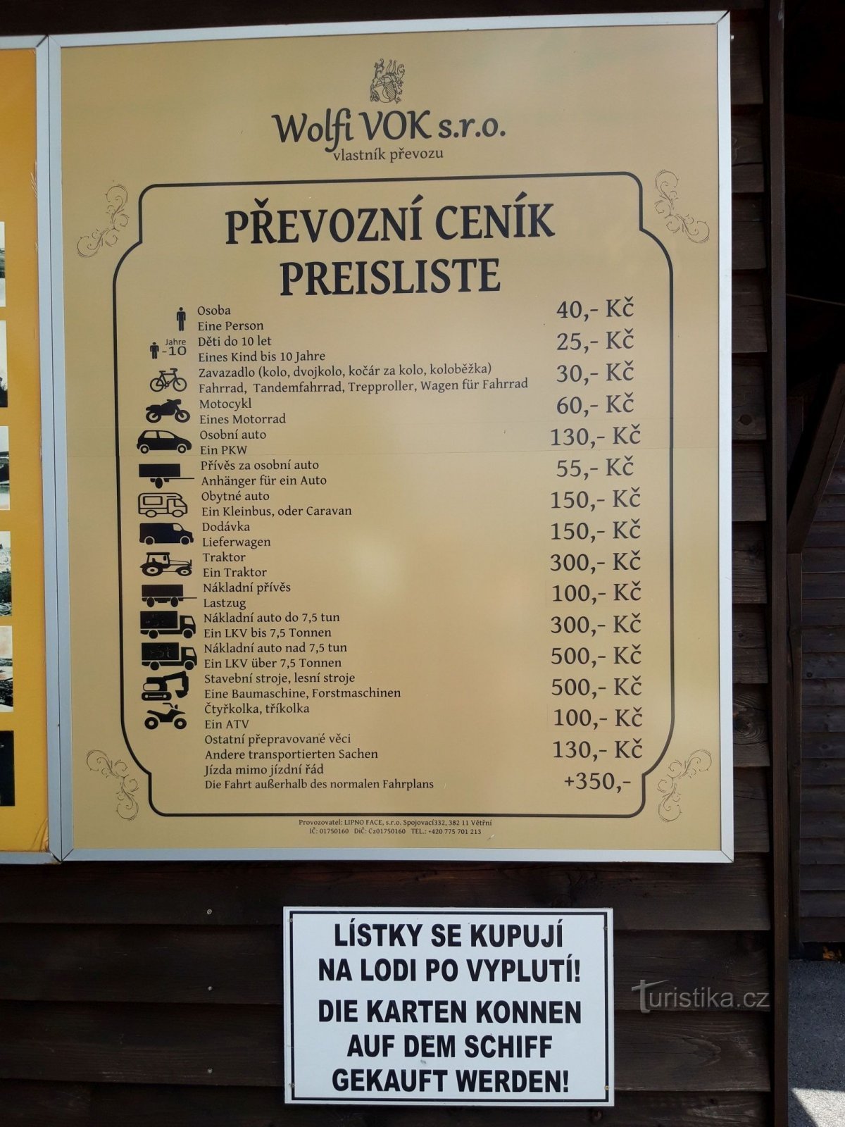 Tento přívoz na Lipně obsluhují dva pracovníci, jeden, patrně kapitán, řídí loď, druhý se stará o vozidla nebo jízdní kola. Oba jsou příjemní a ochotní.