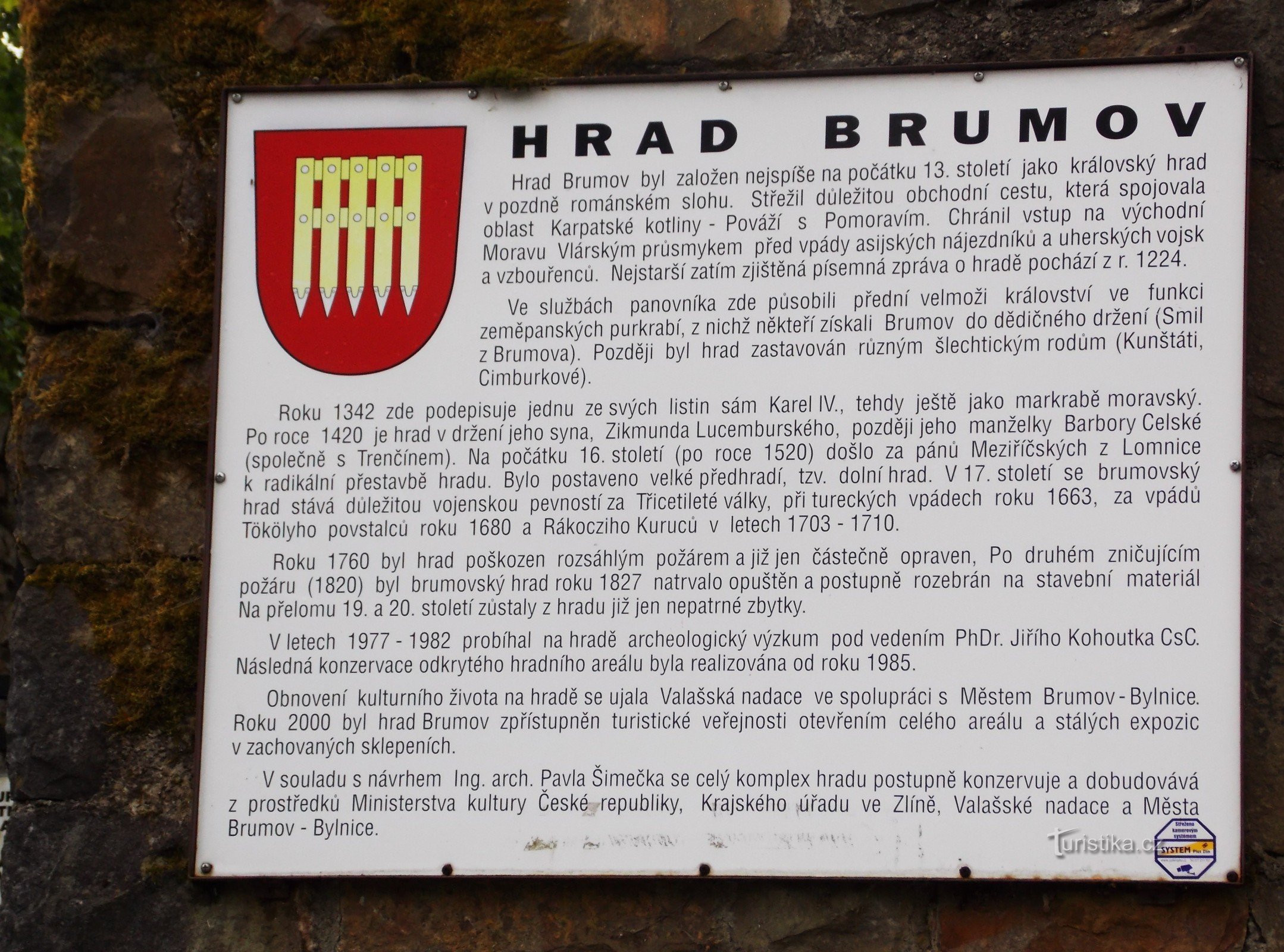 Z centra Brumova od náměstí H. Synkové vás dovede žlutá turistická značka až ke zřícenině středověkého, královského hradu na JV Valašska. Stojí na krásném místě výběžků kopců nad městem, odkud vás okouzlí výhledy na Brumov i okolní krajinu, v dáli vidíte vrcholy Bílých Karpat, Hložeckou krajinu, atd. Kamenný brumovský hrad je dobře vidět z centra města, jeho zříceniny s podzemím zde turisté i…
