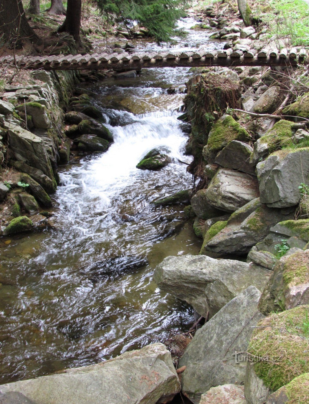 Potok Hučava pramení 1 km pod vrcholem Vozky (1377 m). Dravý horský proud má i svou soustavu kaskád a nižších vodopádů, na svém středním toku se mění v říčku a svoji pouť po 7 km ukončí v rekreační osadě Františkov, kde se v nadmořské výšce asi 560 m stanou jeho vody cenným přínosem řeky Branné. Z Františkova vede proti toku Hučavy lesní asfaltová silnička bez turistického značení. Asi po 1 km…