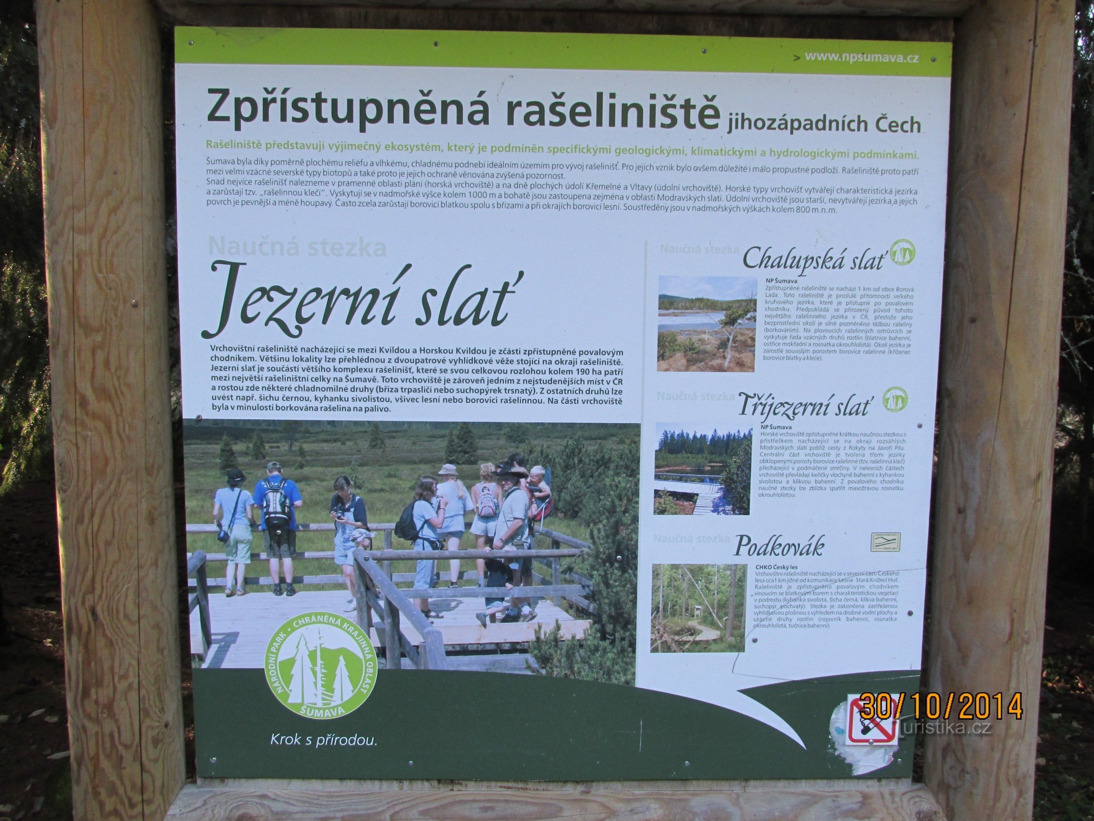 Zaparkujeme na parkovišti (je na 30 min) mezi Kvildou a Horskou Kvildou. K Jezerní slati (1057 - 1075 m n. m.) jdeme po přístupovém chodníku. Na okraji je vyhlídková…