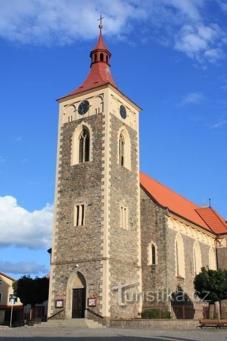 První zmínka o kostele je z konce 13. století, kdy zde byl postaven objekt v raně gotickém slohu, pozdějších obdobích několikrát přestavován. Poslední rozsáhlá novogotická přestavba kostela byla dokončena v roce 1912. Vnitřní zařízení objektu pochází většinou z 18. století.