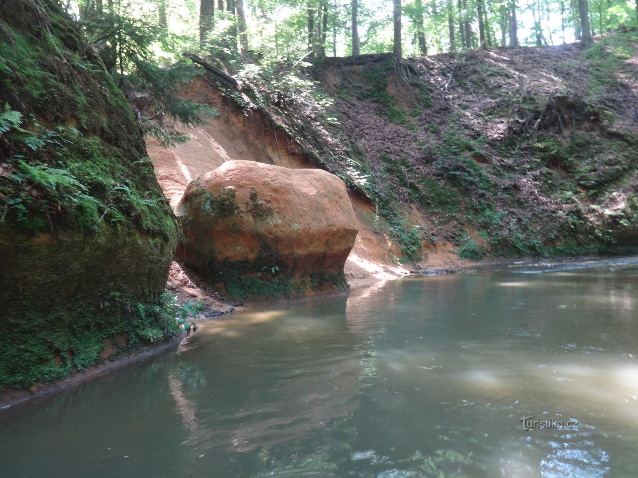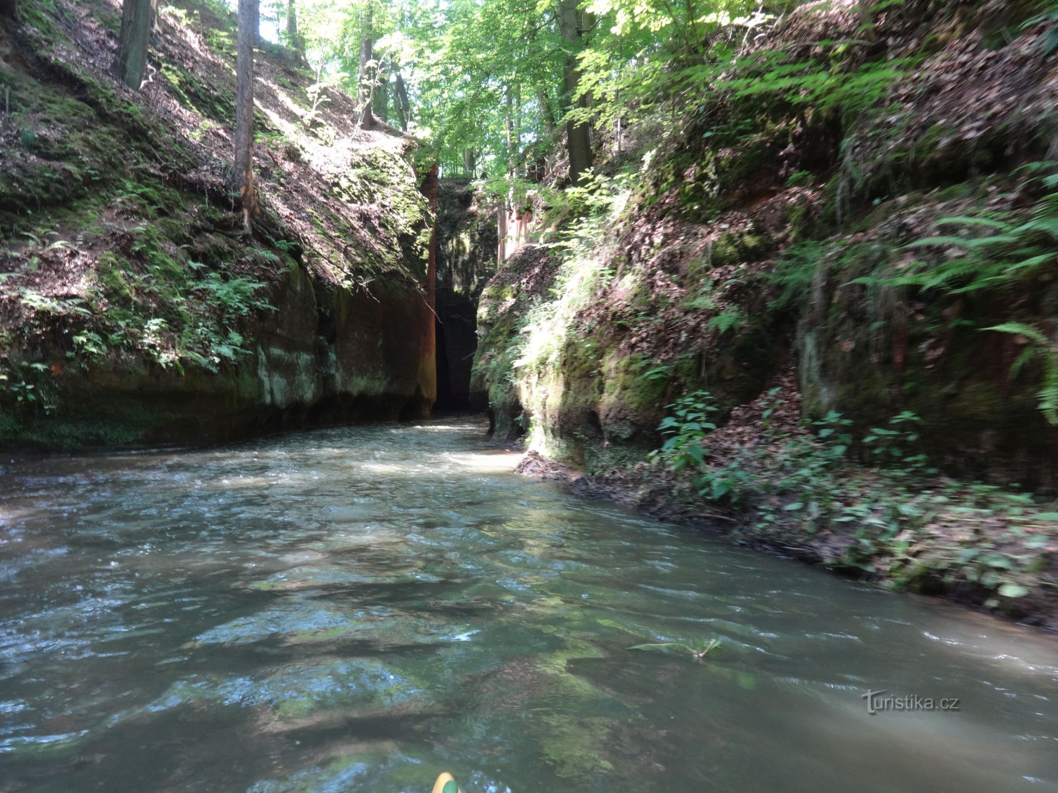 Po několika meandrech následuje rovný úsek, na jehož konci se objevují první skalky a chvíli na to spatří člověk začátek průrvy. Jedná se o jeden z možných nástupních bodů na řeku, ale především zde…