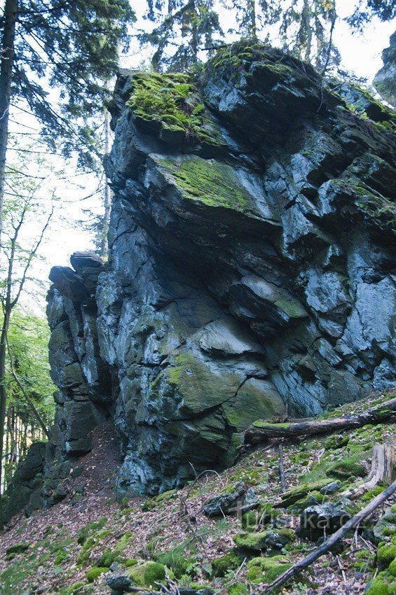 Mohutný skalní útvar najdeme na jihozápadní rozsoše vrchu Volyně trošku mimo hlavní části hřebene táhnoucího se dále přes Smrčník, Kamenný vrch a Bílé kameny až ke Skřítku. Přímo ke skále nevede žádná turistická trasa, je však poměrně jednoduše dosažitelná od modré značky asi 1,5km za samotou U Dobré nálady, skála je patrná při pohledu vlevo do lesa. Z opačné strany při sestupu od Volyně třeba od…