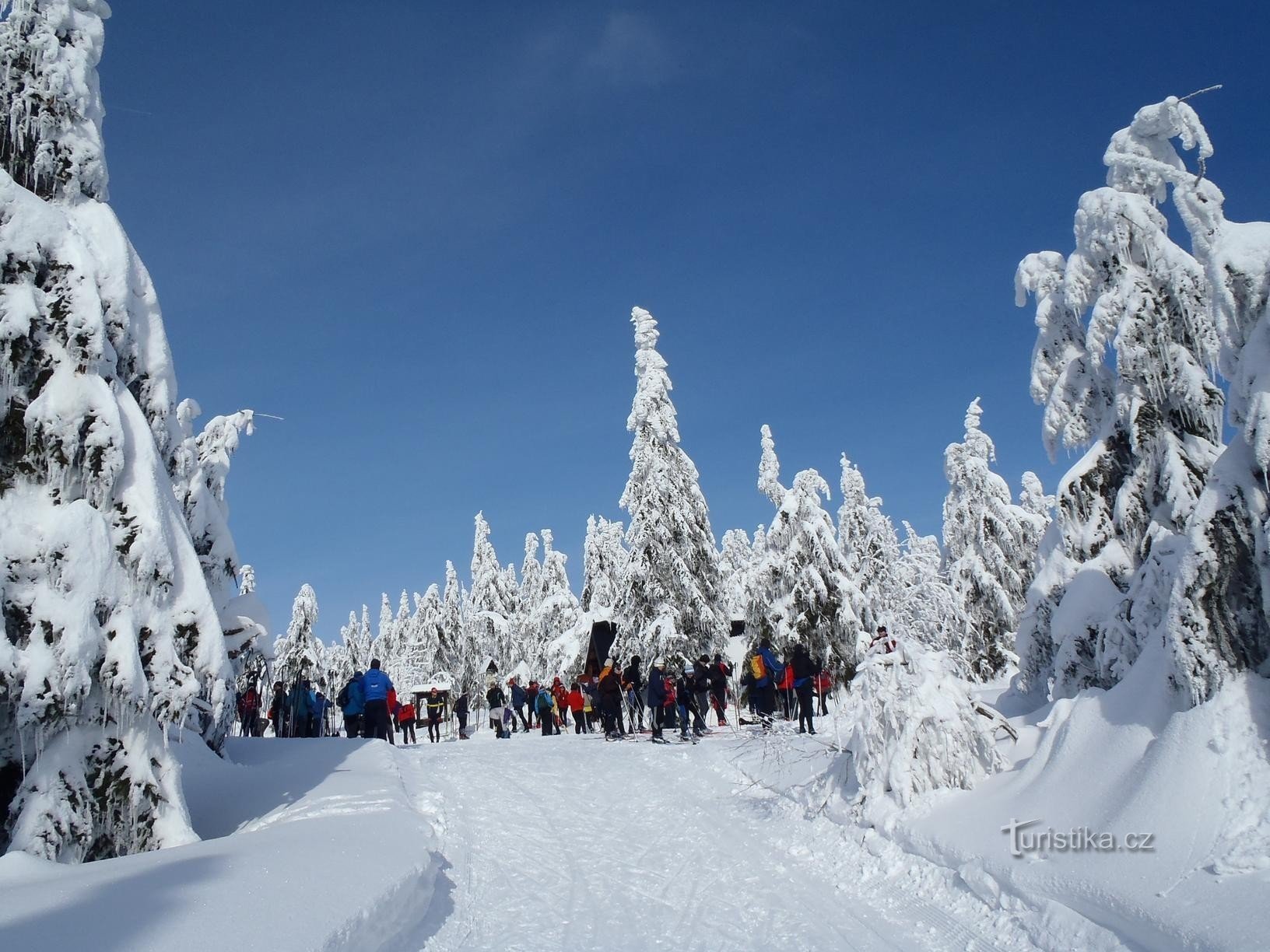 Na Zakletý nás vyvezla sedačková lanovka. Po žluté značce jsme se vydali na Pěticestí, kde bylo toho krásného, slunečného dne poněkud plno. Cestou z Pěticestí k rozcestí Pod Homolí jsme jeli po neznačené cestě po východním úbočí. Neopomněli jsme se zastavit u Kunštátské kaple, která byla přímo kouzelně omrzlá. Z Pod Homole naše cesta vedla po…