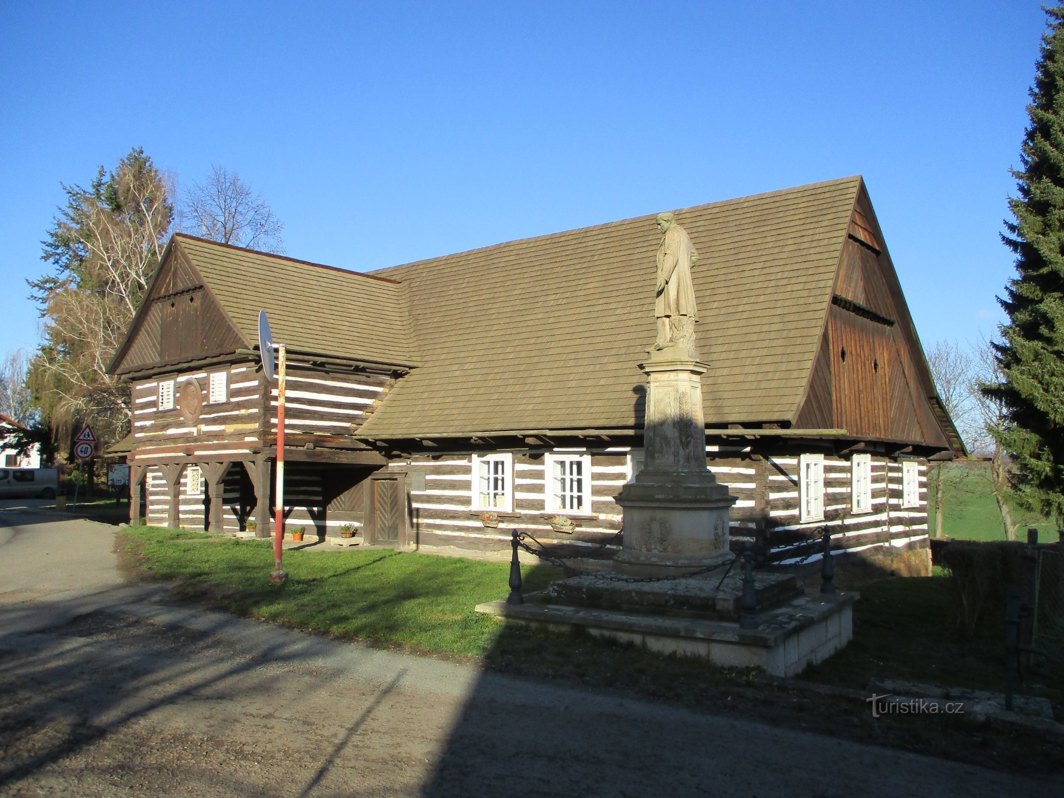 Tato lidová stavba obdélného půdorysu se šindelovou sedlovou střechou, s vysunutým středem na čtveřici profilovaných pilířů a příčně položenou chodbou pochází někdy z období kolem roku 1720. Její původní rozsah můžeme vidět v indikační skice stabilního katastru z roku 1840, kdy celé hospodářství náleželo Johannu Prollovi. Tehdy byl za touto budovou umístěn dvůr, který byl ze všech stran obklopen…