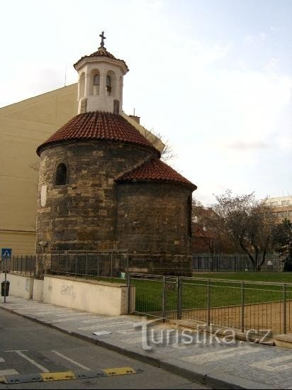 Rotunda Sv.Longina je nejmenší a druhou nejstarší ze tří dochovaných pražských románských rotund. Podle pověsti prý byla původně pohanskou svatyní a teprve příchod křesťanství ji změnil v katolický kostelík. Sloužila jako farní kostelík starobylé osady Rybníček a byla obklopena hřbitovem, užívaným za moru a pro cizince. Dodnes je zde ul. Na Rybníčku a V Tůních, jejichž jména dokládají v místech…