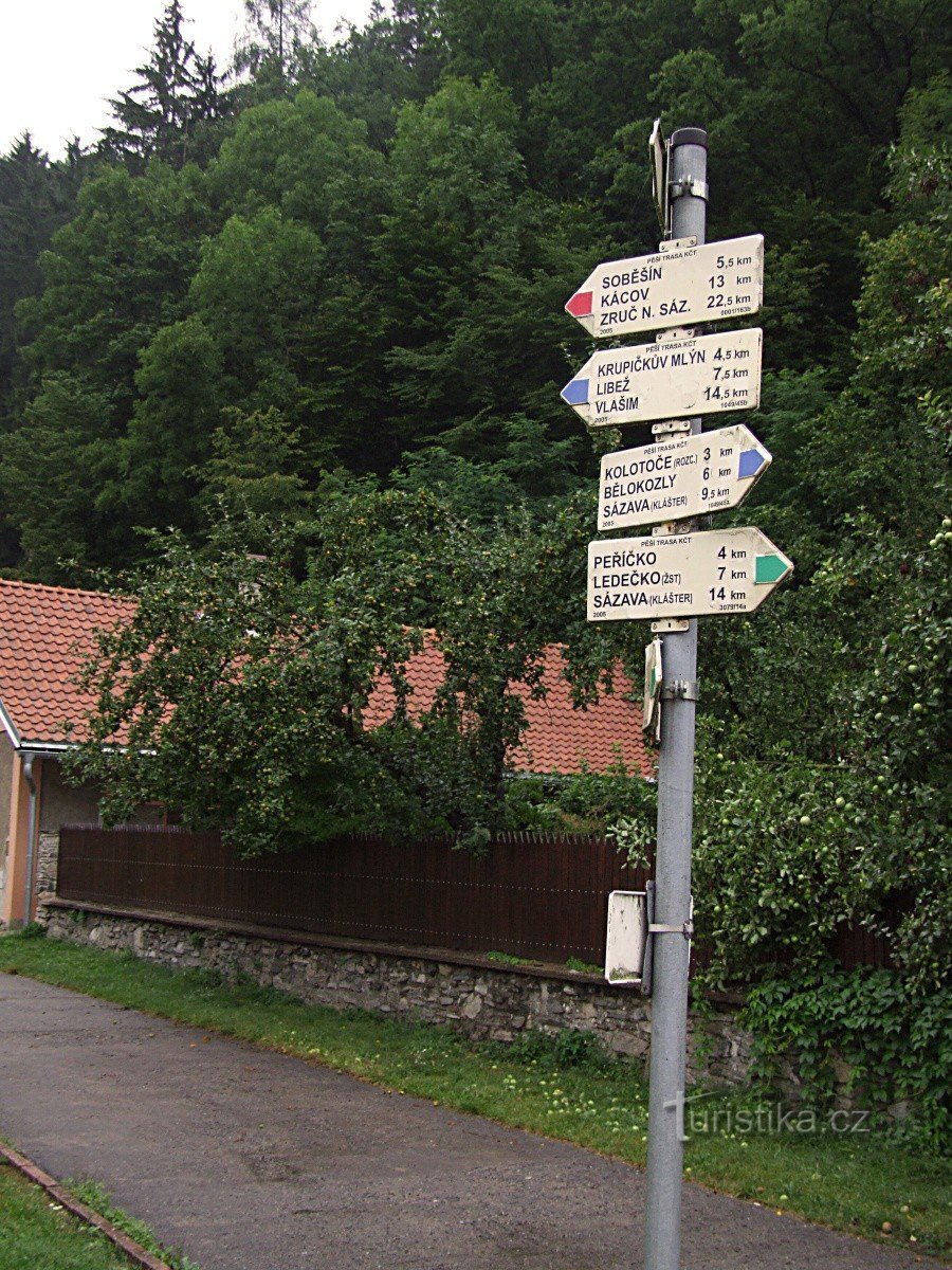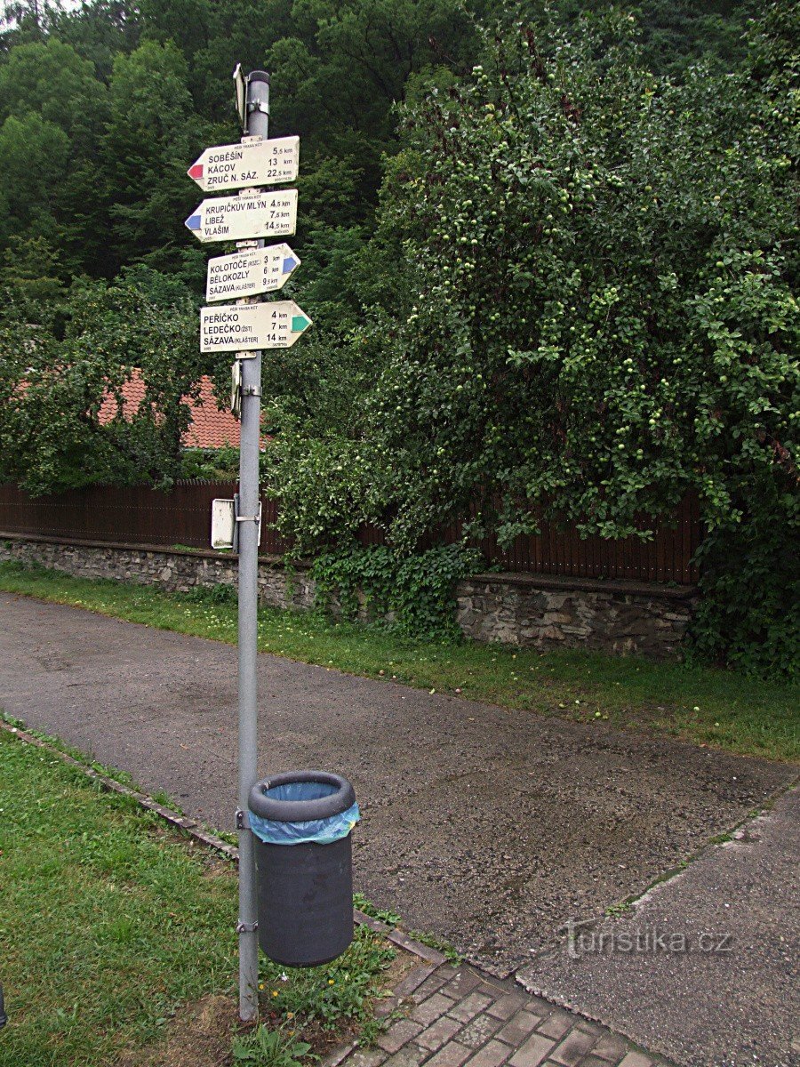 Turistický rozcestník v Českém Šternberku umístěný na hlavní křižovatce v centru obce upřesňuje směry červené, modré a zelené turistické trasy. Červená trasa, která tudy prochází, sem směřuje ze Zruče nad Sázavou a pokračuje dál podél proudu řeky Sázavy po pravém břehu na Rataje a do městečka Sázava. Zelená trasa, která tu má svůj počátek směřuje také do městečka Sázava, ale tentokrát cesta vede…