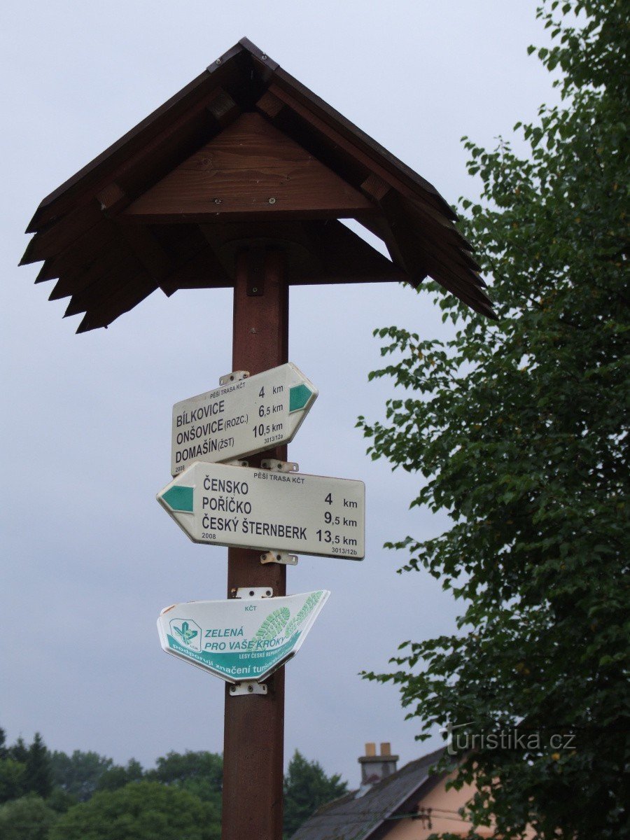 Turistický rozcestník v centru Divišova u kostela sv. Bartoloměje neoznačuje ani tak rozcestí, jako spíše upřesňuje směr zde procházející značené trasy. Jde o zeleně značenou turistickou trasu, která do Divišova přichází od jihu z Bílkovic a pokračuje na sever na Drahňovice a dál k údolí řeky Sázavy. Rozcestí na Tyršově náměstí v Divišově však můžete využít i jako výchozí místo naučné stezky…