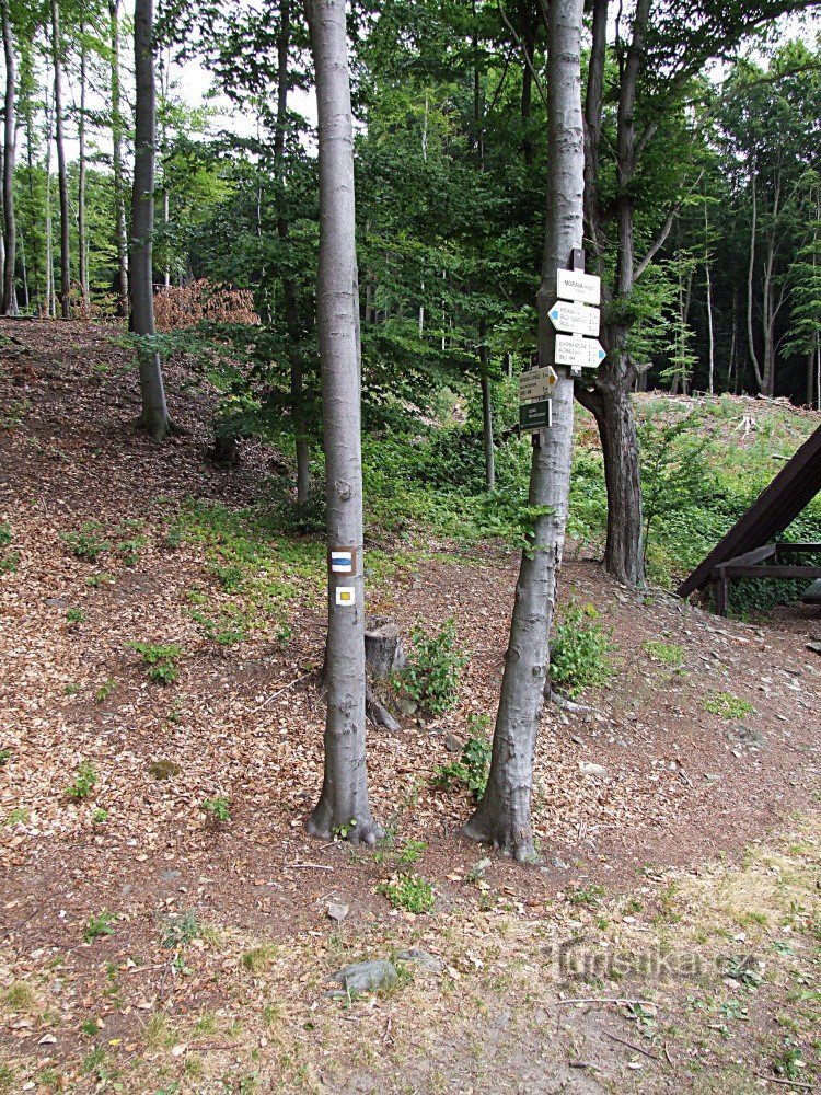 Rozcestník stojí pod vrcholem kopce s názvem Medenec a označuje křižovatku modré a žluté turistické trasy. Modře značená trasa tudy prochází a podle žluté značky, která zde má svůj počátek, se dostaneme do údolí řeky Jizery do Bítouchova, což je asi 3 km. Této žlutě značené trase se také říká Kamenického stezka (Jan Kamenický se narodil v Semilech 15. 2. 1876 - byl to politik, který se zasloužil…
