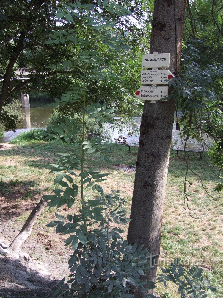 Turistický rozcestník s názvem Na Marjánce najdeme u místní silnice u řeky Sázavy před zdejší vyhlášenou stejnojmennou restaurací. Šipky rozcestníku upozorňují kolemjdoucí na průchozí směr červeně značené turistické trasy, která kopíruje tok řeky Sázavy. Pokud se vydáte proti proudu řeky, dojdete do města Sázava, nebo třeba přes Rataje až do Českého Šternberka. Opačným směrem vede červené značení…