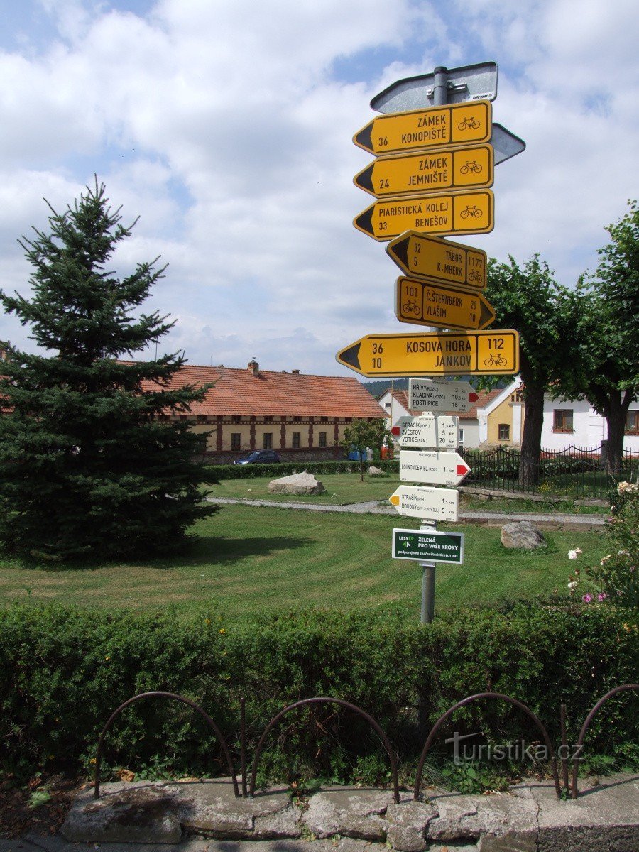 Turistický rozcestník stojící v malém parku na náměstí Jana Žižky v Louňovicích pod Blaníkem upřesňuje směry červeně a žlutě značených turistických tras. Červené trasy se zde na náměstí v Louňovicích scházejí hned tři. Jedna sem směřuje přes Velký Blaník od Vlašimi. Druhá přes Postupice od Benešova a poslední ze západu z Votic. Žlutě značená turistická trasa do Louňovic pod Blaníkem přichází od…