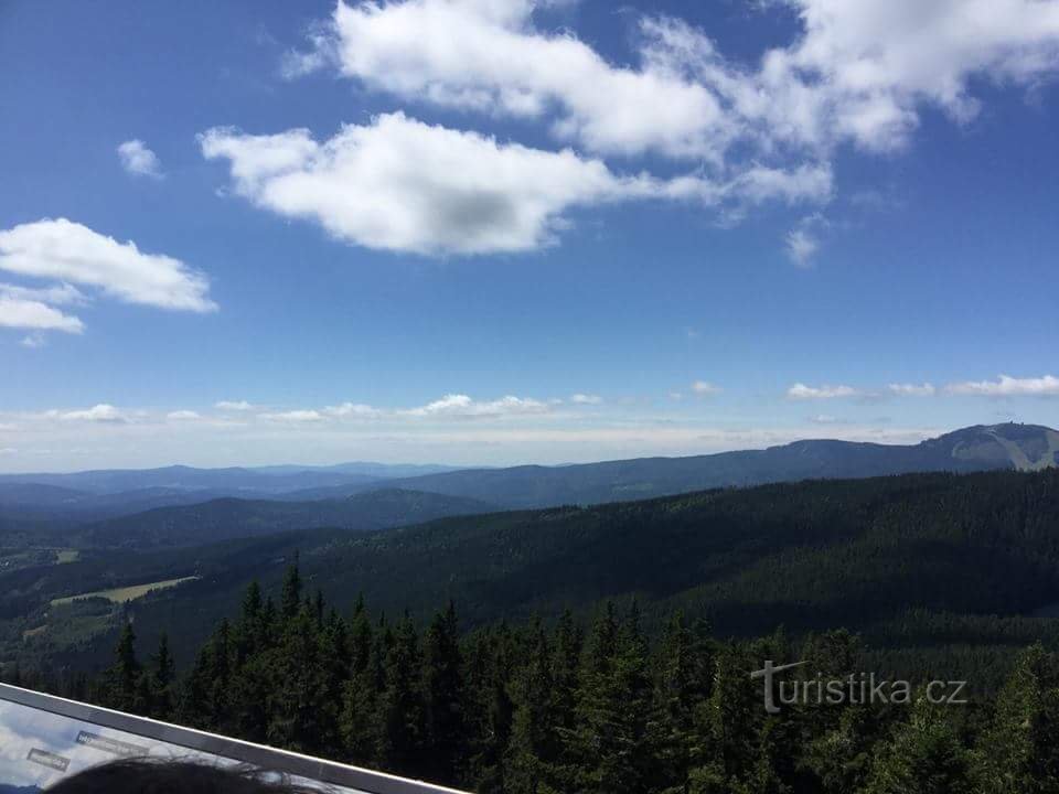 V Železné rudě nasedáme na lanovku jedoucí na vrchol Špičáku. Už cestou vzhůru běžného člověka jímá hrůza při pohledu pod sebe na bikeové trasy vedoucí pod námi. Opravdu smekám před výkony krosových cyklistů jakož i před překážkami a všemi nástrahami které musí překonat...Po dosažení vrcholu, pár desítek metrů od výstupní - nástupní stanice lanovky se do výše 26,5 metru tyčí rozhledna, o jejíž…