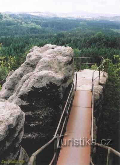 Zbytky skalního hradu Šaunštejn, nazývaného také Loupežnický hrad, stojí na mohutném pískovcovém bloku v Jetřichovických stěnách nedaleko Vysoké Lípy na Děčínsku v Ústeckém kraji. Vrcholovou plošinu hradu, dlouhou asi 70 metrů a širokou 15-20 metrů, tvoří několik bloků, které jsou dnes spojené můstky. V severní části je do skály vyhloubena spodní část hlavní věže, malá místnost se sedátkem a…