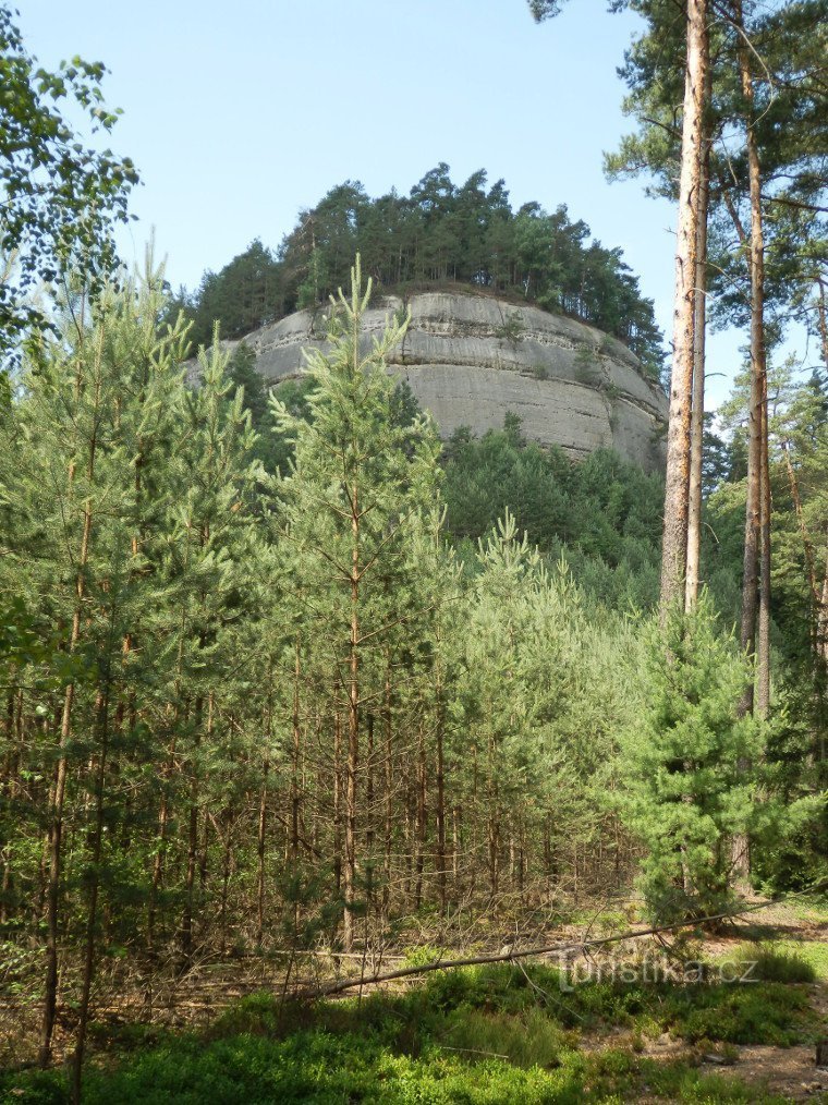 Široký kámen je zajímavou stolovou horou v blízkosti obce Hamr na Jezeře v Ralské pahorkatině. Hora začala vznikat před 90 miliony lety v geologickém období svrchní křídy. Vnější erozivní síly vypreparovaly z pískovcové tabule současný útvar lemovaný ze tří stran strmými stěnami. Menší narušení stěn se vysvětluje tvrdším pískovcem, než který můžeme vidět u skalních útvarů Divadla, nedaleké…