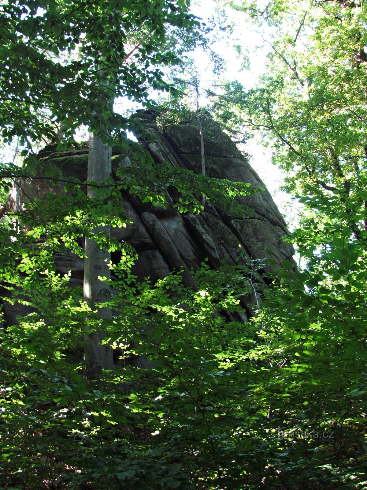 Jednou z nejkrásnějších mnou viděných skal v Žulovské pahorkatině byla ta, vypínající se z temene 447 m vysokého kopečka a nazývající se hezky libozvučně Píšťalou. Celá vyvýšenina je přírodní památkou, je zarostlá smíšeným lesem (s převahou buků) a ten ze všech stran obklopuje také vlastní skalisko. To naštěstí dosahuje výše okolo 10 metrů a jen tak se v tom podrostu neztratí. Hlavně od severu…