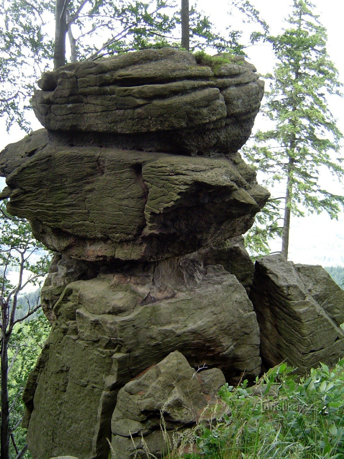 Tato skála se nachází v Dolní Lomné. Dostanete se k ní po modré turistické značce z Lomné. Na rozcestí ( 49°31'49.421"N, 18°41'59.832"E ) však dále nepůjdete po cestě ,ale rovně úzkou stezkou. Na konci stezky se před vámi objeví skála. Na kamenný komín se bez lana nedostanete, protože je oddělený a vyvýšený od zbytku skály. Pokud máte lano a další horolezecké vybavení ,tak není problém vylézt…