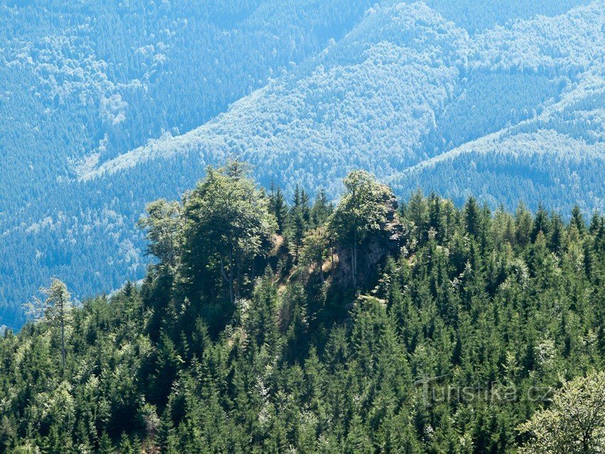 Na ostrohu vybíhající na jižním úbočí Šindelné hory můžeme narazit na pás zajimavých skalek. Jsou to pararulové a svorové mrazové sruby výšky od 2 do cca 10 m. Jsou poměrně lehce dostupné od prudké zatáčky na tzv. Vodní cestě, vedoucí od Červenohorského sedla po úbočí Šindelné a Suché hory nad údolím Divokého potoka (zelená TZ od Bíleho sloupu, či modrá lyžařská TZ) do Kout.