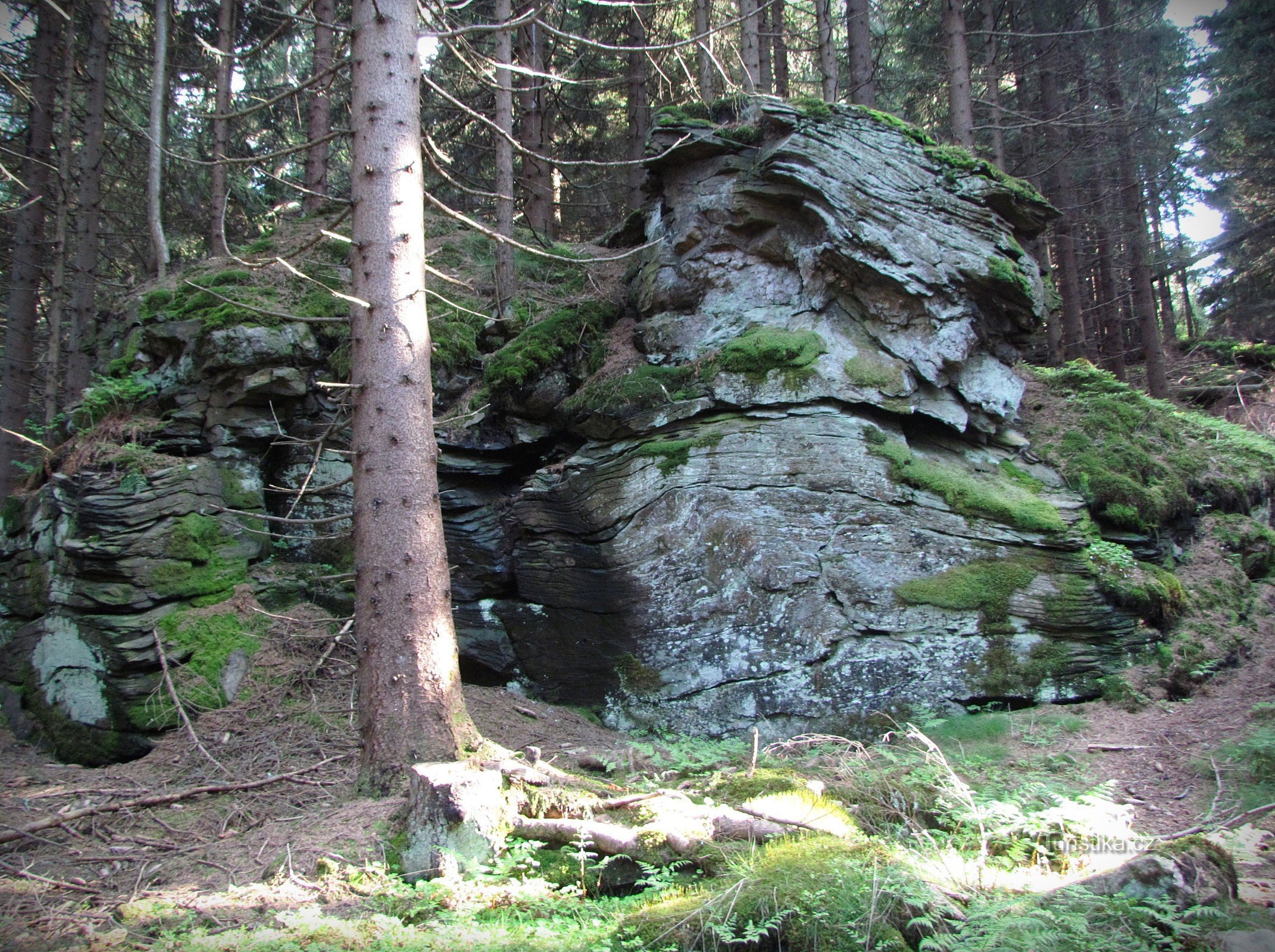 Nejen vrcholy Žárového vrchu, obou Plošin a jejich úbočí jsou plny zajímavého jesenického „kamení.“ S pozoruhodně tvarovanými skalními výchozy z přeměněných hornin (blastomylonitu) je možno setkat se i v sedle, oddělujícím masív Žáráku od temena té vyšší z Plošin. Ze Žárového vrchu k němu po hřebeni lesem klesá dobře znatelný a vyšlapaný chodníček. První bizarní skalky se nacházejí ještě nad…