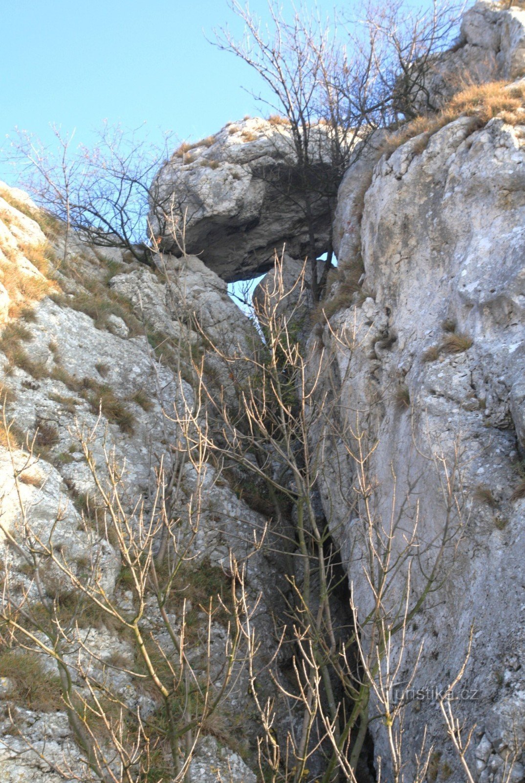Západní svah mohutného vápencového bradla Stolové hory na Pálavě je poset bezpočtem drobných i větších skalních stěn či skalních věží a věžiček. V jeho severní části na katastru obce Perná se zvedá dominantní sekupení, které bývá nazýváno Perenské skály. Jistou raritou je zde dobře viditelý mohutný skalní blok, který jakoby leží nad rozsedlinou mezi dvěma skalisky. Má rozměry přibližně 4x2,5x1,5…