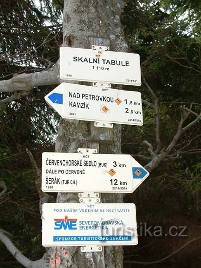 Rozcestí červené modré značky. Nachází se na lesní cestě asi 2 kilometry jihovýchodně od Červenohorského sedla. Modrá značka vede právě na Červenohorské sedlo.