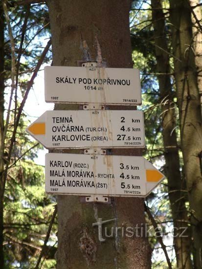 Skály pod Kopřivnou je orientační místo a rozcestí na žlutě značené turistické trase. Nachází se na křižovatce lesních cest severozápadním směrem od rekreační obce Malá Morávka. V blízkosti rozcestí jsou zajímavé skalní útvary. Kopřivná ( 1019 m.n.m.) je nevýrazný vrchol a zvedá se západním směrem od rozcestí. Po žluté značce dojdeme k tomuto rozcestí od restaurace Rychta v Malé Morávce a…
