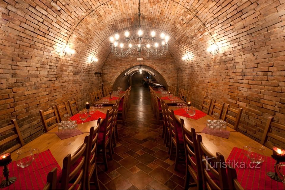 „Někdy v 18. století tady byl obrovský rybník táhnoucí se od Brumovic po Velké Pavlovice a místní vinaři se tak do sklepů dostávali na člunech nebo po hrázi. Byli tedy v bezpečí před návštěvami manželek a mohli s vínem trávit dostatek času,“ vypráví Stanislav Novák a ukazuje do krajiny rozprostírající se pod námi.
