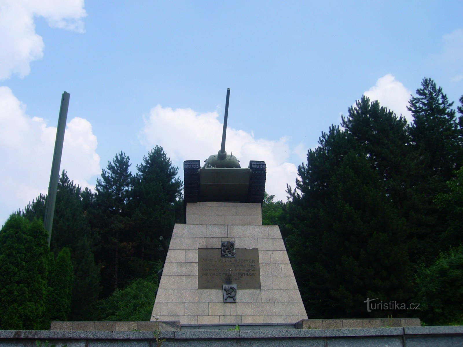 Je to skutečný původní tank T- 34, který svou cestu ukončil právě v Ostravě.