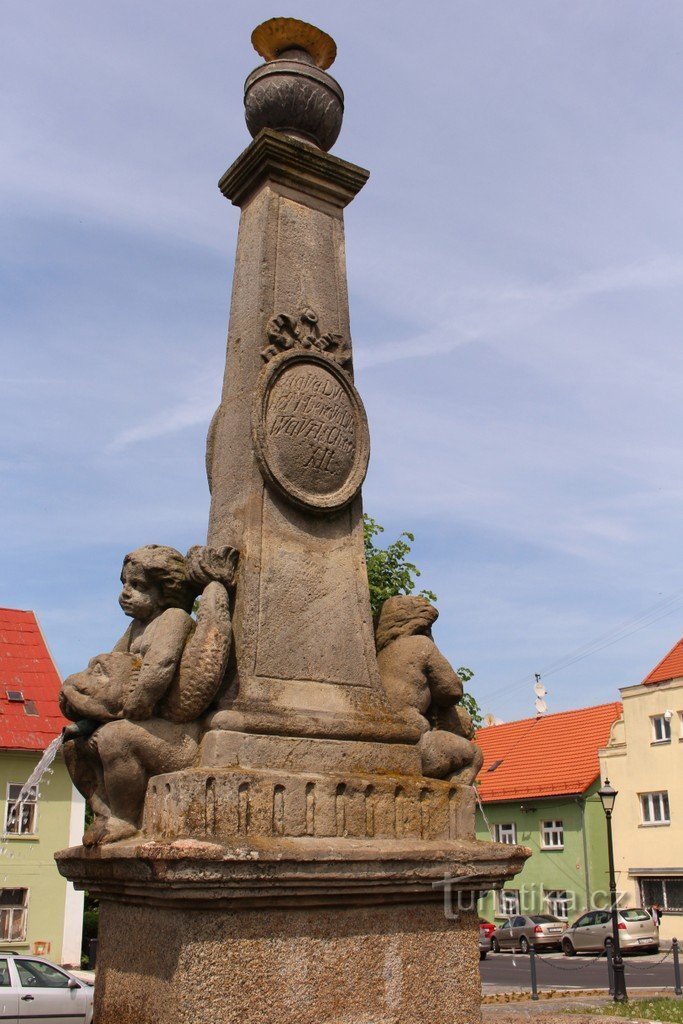 Šluknov, kašna na náměstí Míru.
