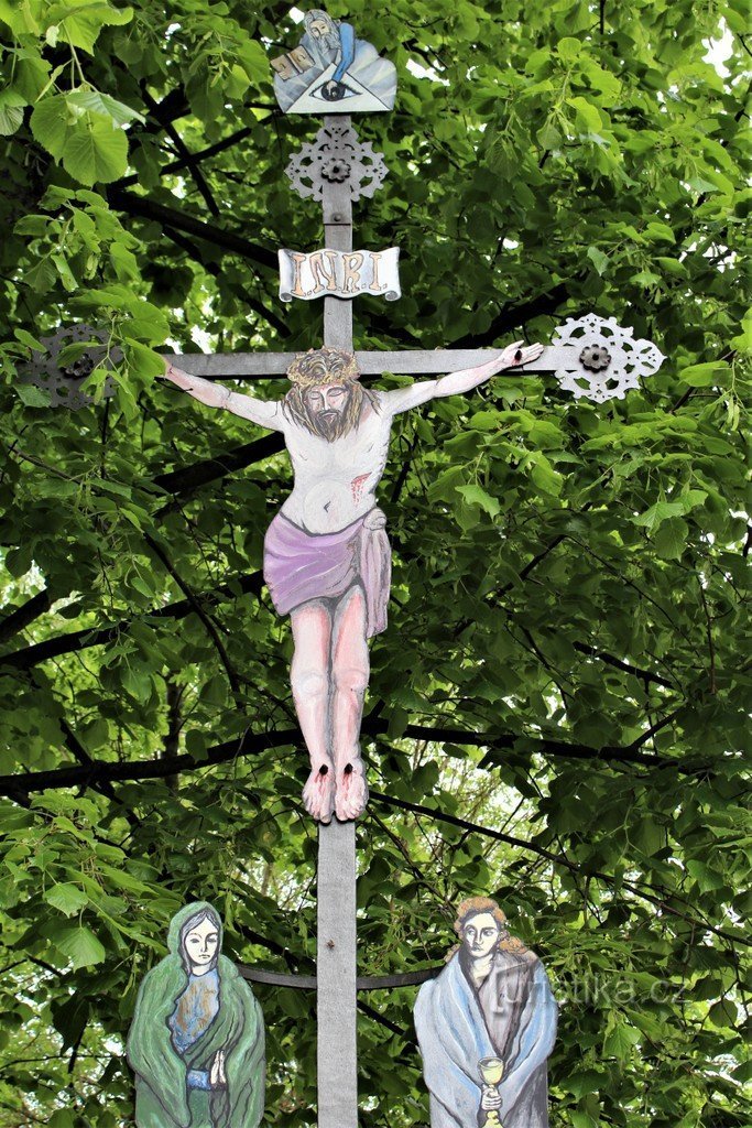 Zajímavou drobnou sakrální památkou města je kříž v ulici T. G. Masaryka. Na kamenném podstavci s německým nápisem je umístěn kříž s ukřižovaným Kristem, pod kterým stojí Panna Marie a sv. Máří Magdalena. Na kříži je několik menších zdobných prvků. Z informační tabule se dozvídám, že kříž byl v podstatě torzem a musel být obnoven. Finance byly poskytnuty z Ústecké finanční nadace. Práce prováděli…