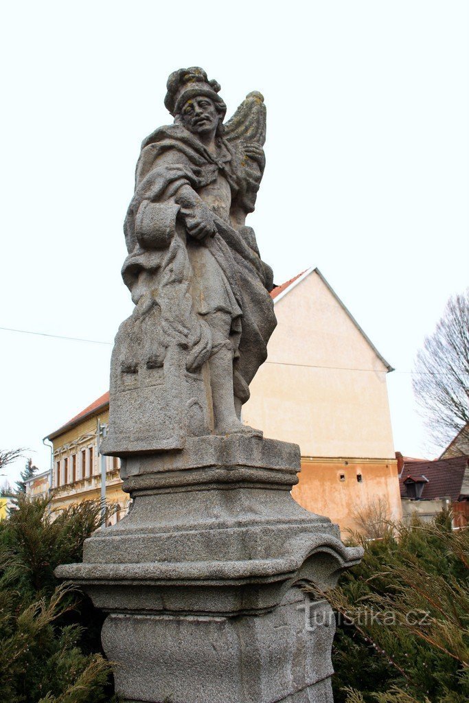 Socha se nachází při severním vstupu do zámku. Kamenný podstavec nesoucí sochu je zakrytý keři jalovců. Sv. Florian bývá obvykle ztvárněn jako římský důstojník a to je i v tomto případě. Socha, jak jinak, je barokní a byla vytvořena v první polovině 18. století. Autor sochy je neznámý. I když sv. Florian není českým světcem, jeho sochy jsou v naší zemi poměrně časté. Bývá i na morových sloupech.…