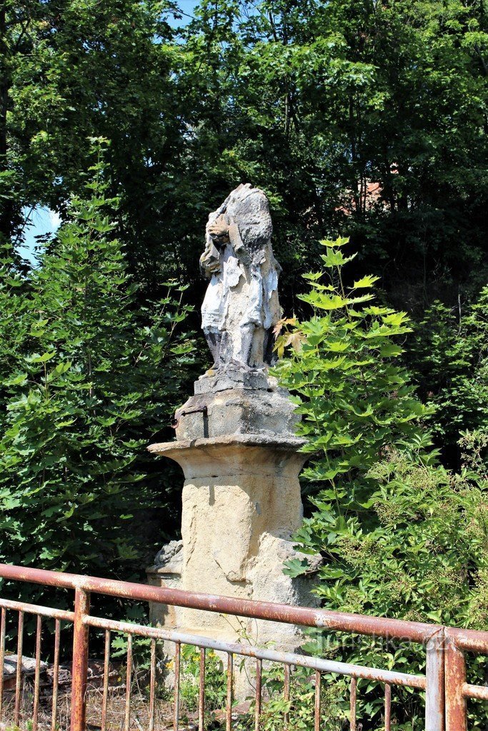 Socha stojí na mostě přes řeku Merklínku. Jedná se o barokní práci z roku 1778. Bohužel dnes ji lze označit za torzo. Soše chybí hlava a je celá poškozená. Zda se opět zaskví v plné kráse je otázkou.