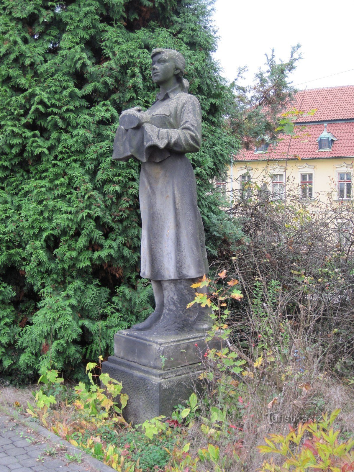 Tato socha je dílem sochaře Jiřího Bradáčka (1922–84). Socha vznikla pravděpodobně počátkem 60. let 20. století na objednávku Československých státních drah. Při cestě vlakem z Německa do ČR je Děčín první stanicí, kde vlaky zastavují. Možná to mohlo být důvodem k umístění této sochy, která vyjadřuje českou tradici vítat hosty chlebem a solí. Tato socha má v rukou nakrojený bochník chleba a na…