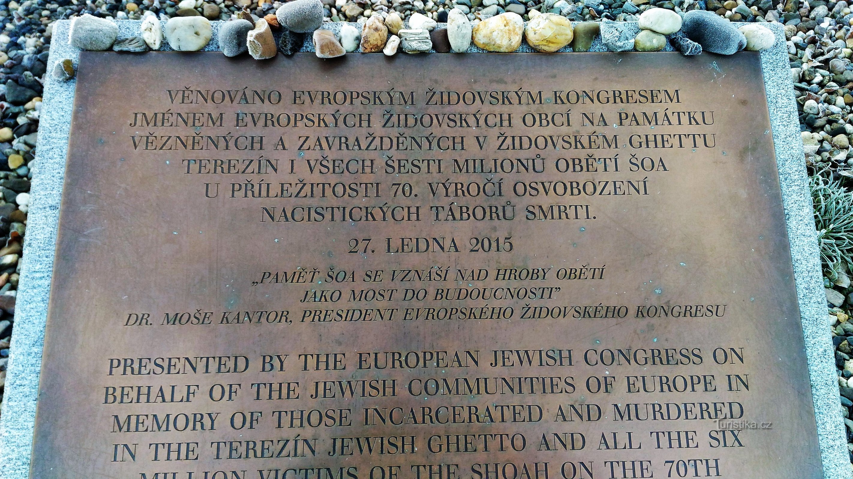 Socha od Aleše Veselého vznikla na žádost Evropského židovského kongresu k uctění památky židovských obětí za II. světové války. Socha stojí poblíž židovského hřbitova v Terezíně. Nad vypouklou kovovou zrcadlovou plochou ve výšce 2,5 metru je na ocelové konstrukci trojúhelníkového tvaru usazen obrovský kus skály tak zvaný židovský kámen, který pochází z lomu na Sibiři. Socha byla odhalena v roce…