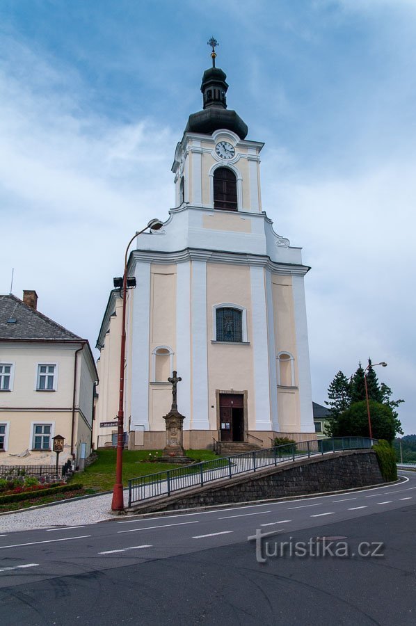 Štíty – místo hradu kostel
