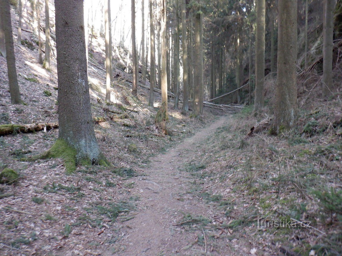 Studená rokle měří necelý kilometr. My jsme se do ní vydali od obce Kvítkov po žluté turistické značce. Sluníčko svítilo a bylo příjemně. Jen jsme však vešli do lesa na začátek Studené rokle, začali jsme se oblékat. Toto místo je opravdu hodné…