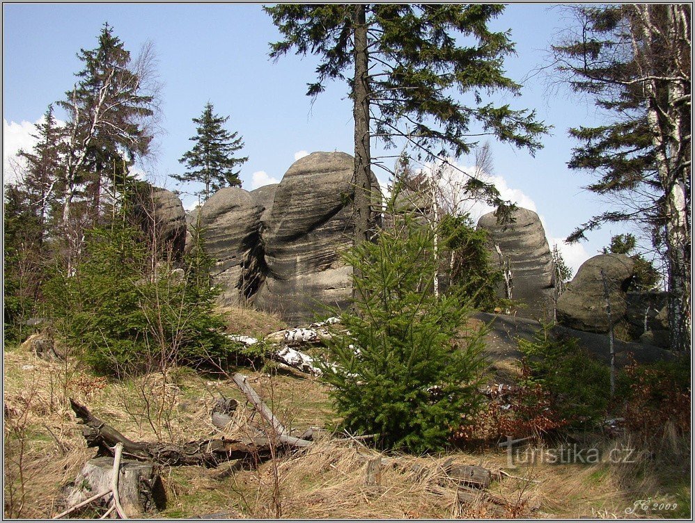 Skalní vyhlídka o nadmořské výšce 702 m se nachází nedaleko horní části Kovářovy rokle a je součástí hřebene Broumovských stěn. Z vrcholu skály je dobrý výhled do okolí na Broumovskou kotlinu, Javoří a Soví hory, na Policko. Přístupná je pomocí červené a zelené turistické značky od chaty Hvězda (parkoviště) nebo rovněž po červené od parkoviště nad Slavným. Trasa je popsaná zde.