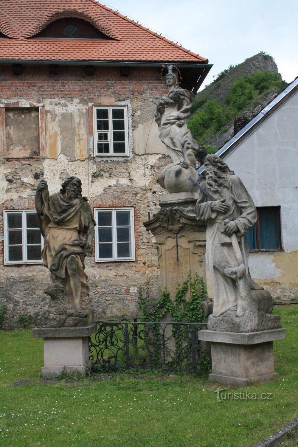 Ale zajímavé věci se také nacházejí v obci samotné. Kromě kostela, jeskyně, bývalého kláštera či studánky spočinul můj zrak také na zajímavé skulptuře.