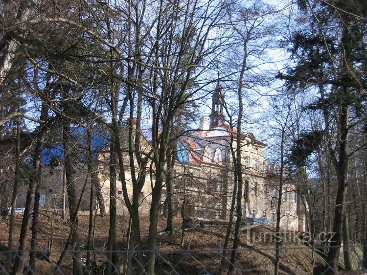 Zámek byla patrová budova se středním…