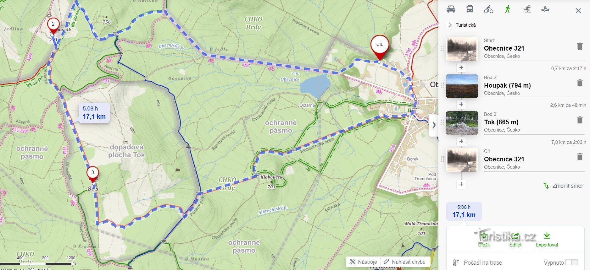 Tato okružní trasa má zhruba 17 km. Začíná v Obecnici, vede přes vrchol Houpák, Tok a končí opět v Obecnici. Vychází se z Obecnice u Příbrami, kde se dá zaparkovat. My jsme si s kamarádem vybrali vrch Houpák jako skvělé místo k přivítání prvního úsvitu roku 2021. Myslím, že jsme zvolili dobře, protože nikde ani noha... Pokud budete mít podobně ztřeštěný nápad a vyrazíte sem na svítání ještě za…