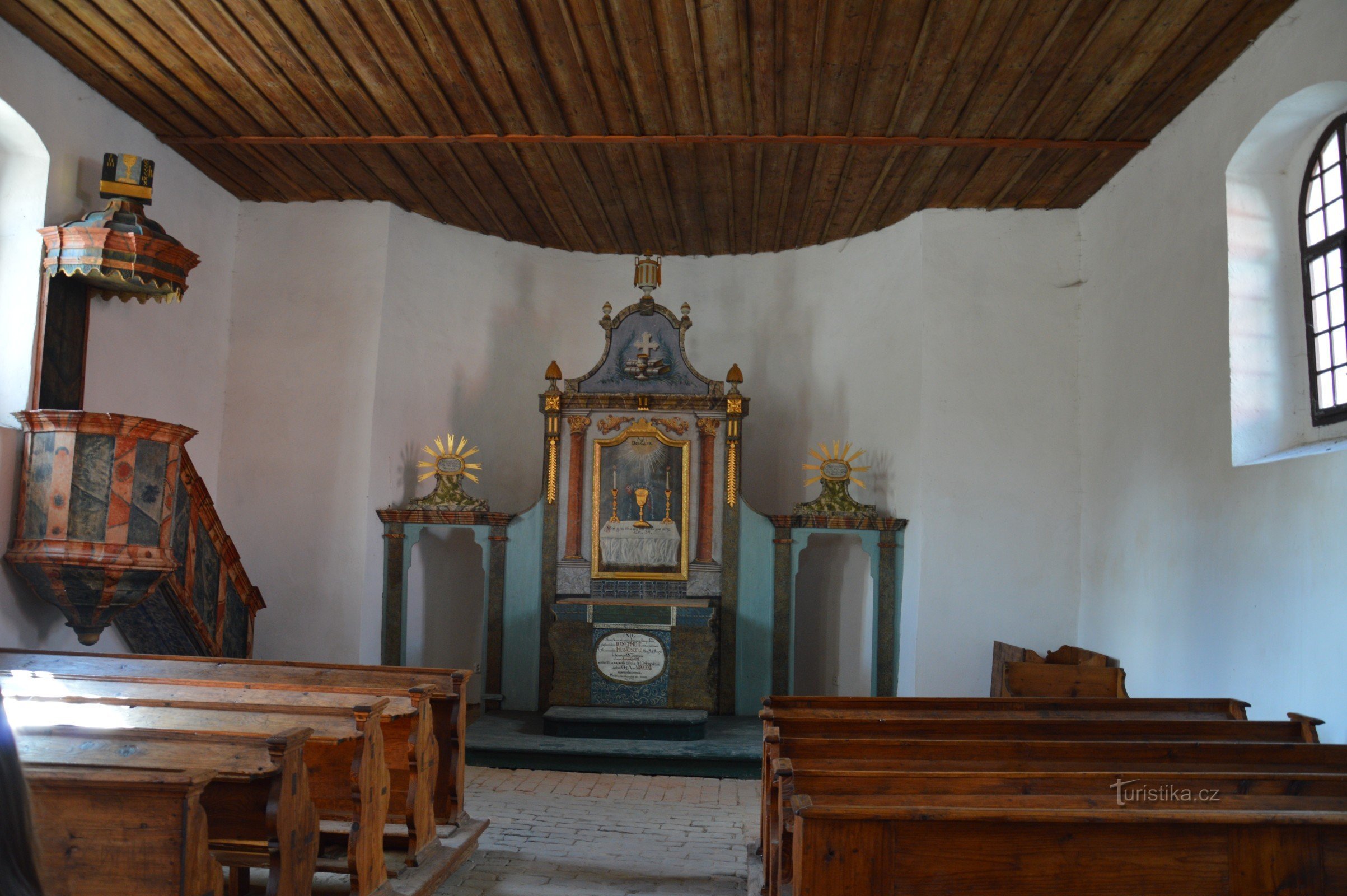 Vedle hřbitova na kopci nad Humpolcem stojí tak zvaný Toleranční kostel. Tolerančních kostelů stojí dosud v Česku několik. Kostel je otevřen v rámci návštěvy skanzenu Zichpil – Nápravníkova stavení. Průvodkyně ze skanzenu v rámci prohlídky otevírá pro návštěvníky tento kostel a podává informaci o jeho významu a historii. Pro mě byla zajímavá informace, jak se již před několika staletími…
