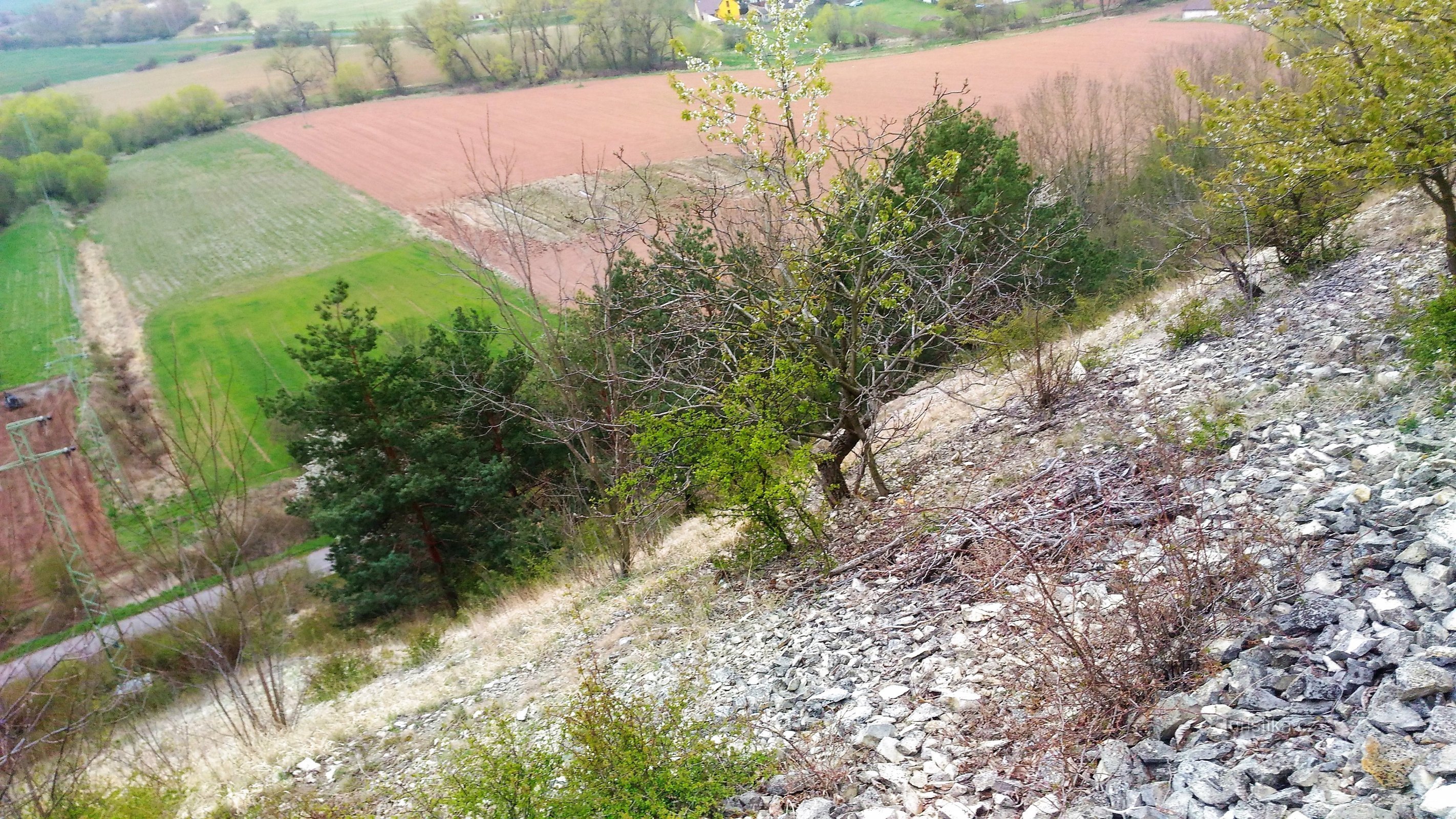 Na tak zvaných bílých stráních nad silnicí z Touchova do Zbrašína roste mnoho vzácných a chráněných teplomilných rostlin – koniklec luční, hlaváček letní, bělozářka liliovitá .... Tato prudká opukovou sutí pokrytá stráň je pozůstatkem těžby opuky využívané ke stavbě místních domů a také se v těchto místech těžila počátkem 20. století jílová hlinka. Byl jsem zde v druhé polovině dubna, kopečky…