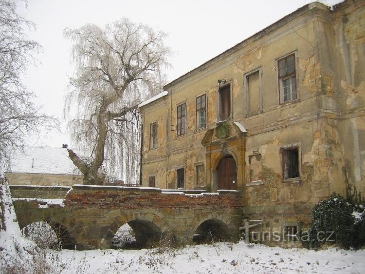Zámek vznikl roku 1697 na místě vodní tvrze, zpustošené a opuštěné po třicetileté válce.Kolem zámku je dodnes patrný z části zasypaný vodní příkop ke kterému vede Kamenný most.Je unikátní tím ,že od svého vzniku r 1697 neprodělal žádné stavební úpravy , ač unikát není v dobrém stavu...