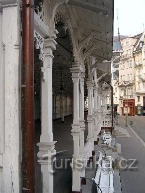 Dřevěná kolonáda kryje výtoky pramene…