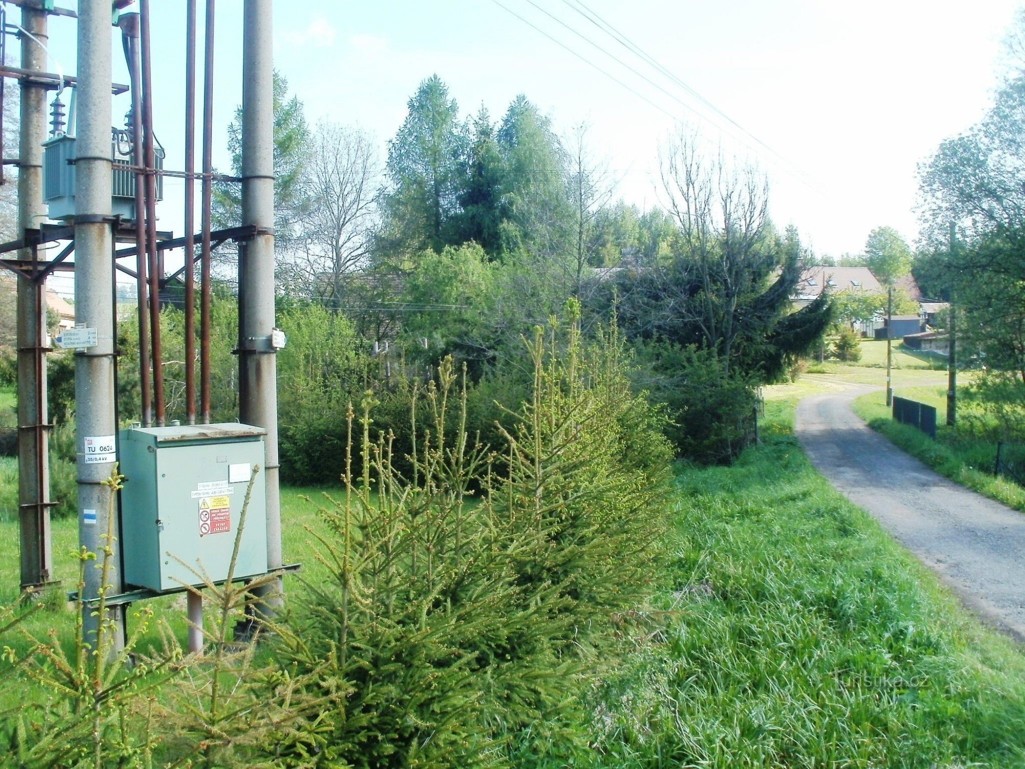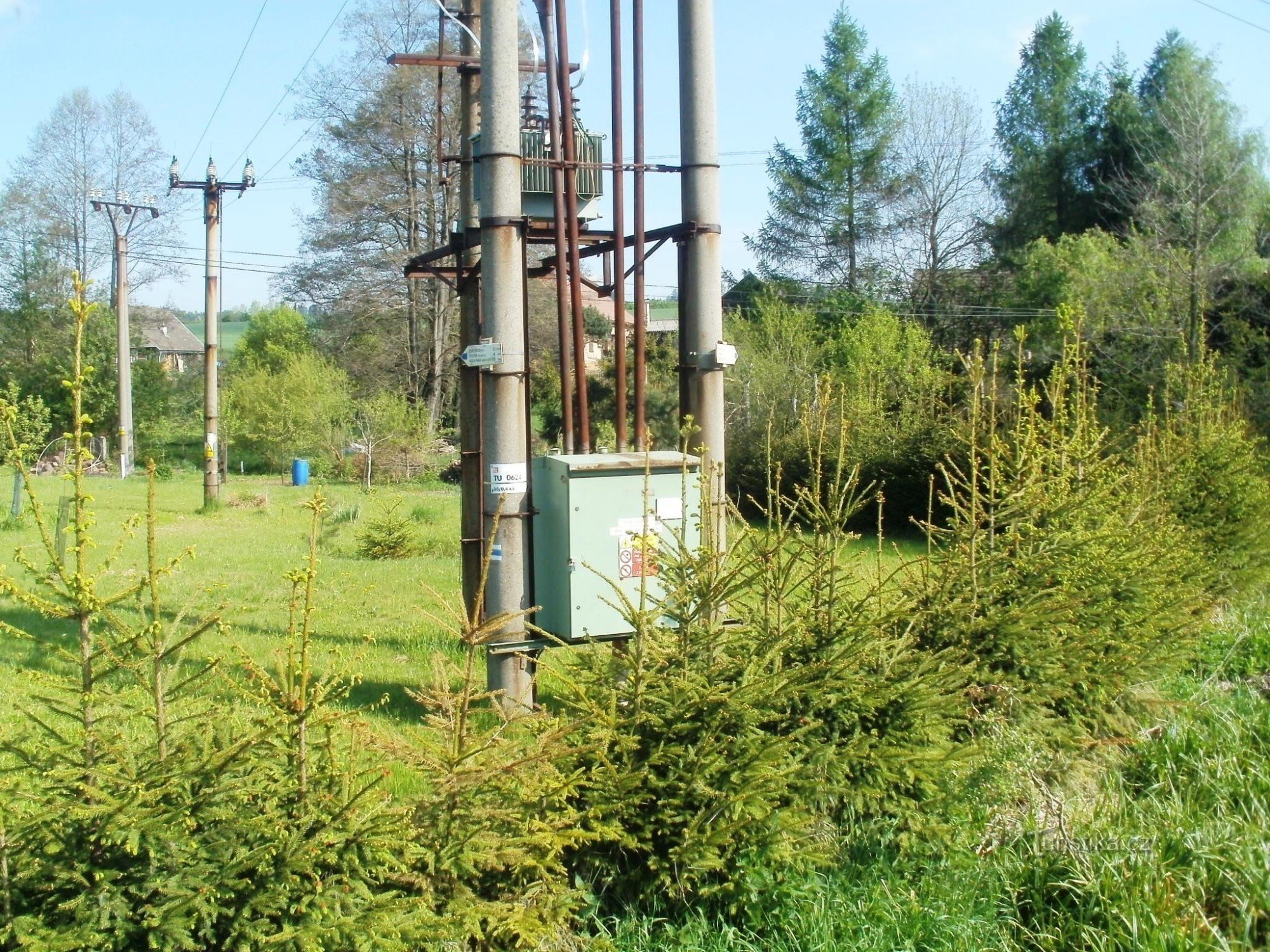 Turistický rozcestník, resp. směrníky, které jsou umístěny na trafostanici v obci Borovnice, ukazují turistům cestu po modré značce ve směru Nová Paka, Vrchovina, Stupná, Borovnice (žst) - Zadní Ždímice, Dubinka, Zadní Mostek.
