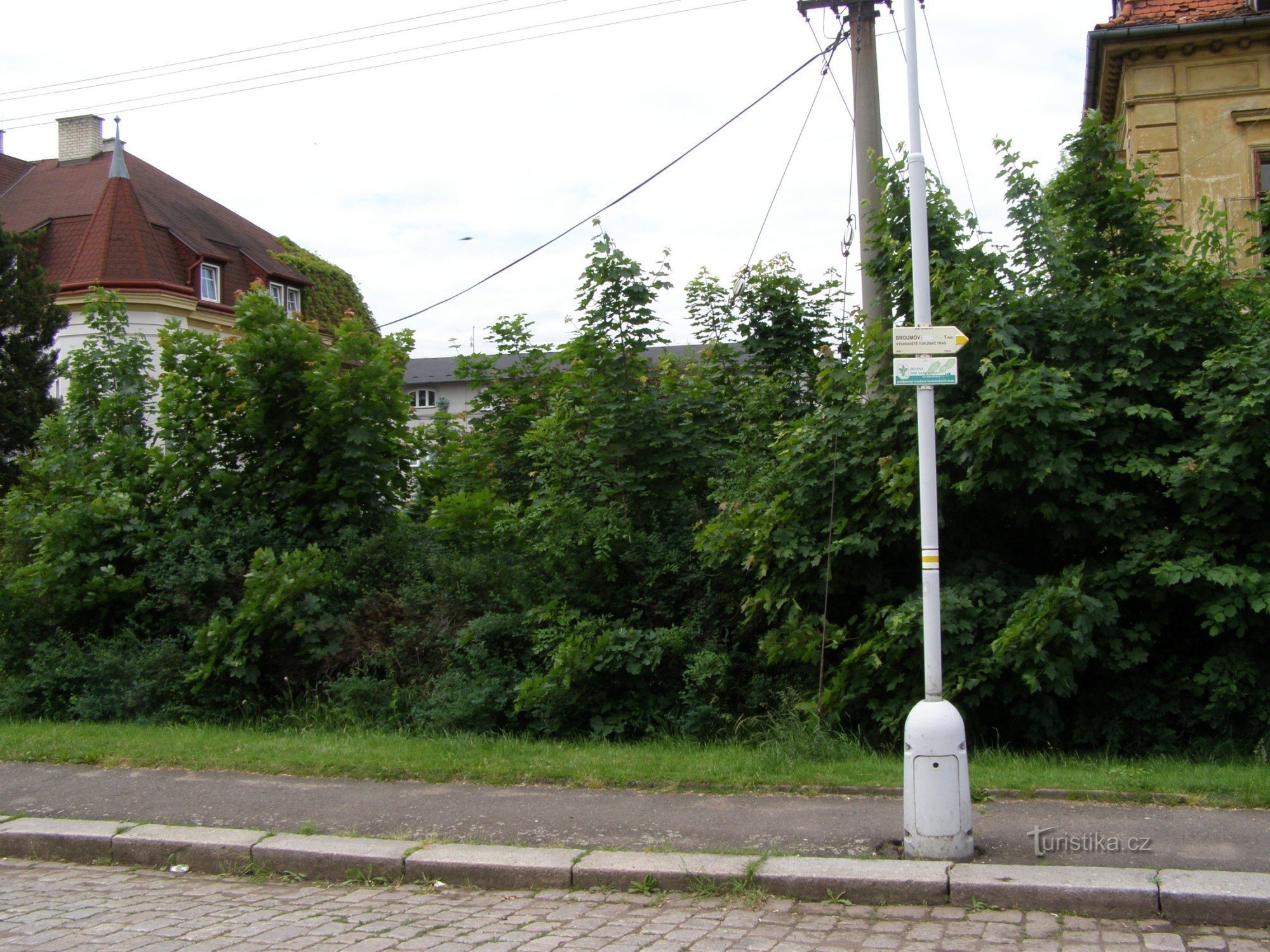 Turistický rozcestník, resp. směrník, který se nachází u železničního nádraží, ukazuje turistům cestu po žluté značce ve směru žst, nádraží - východiště turistických tras u náměstí.