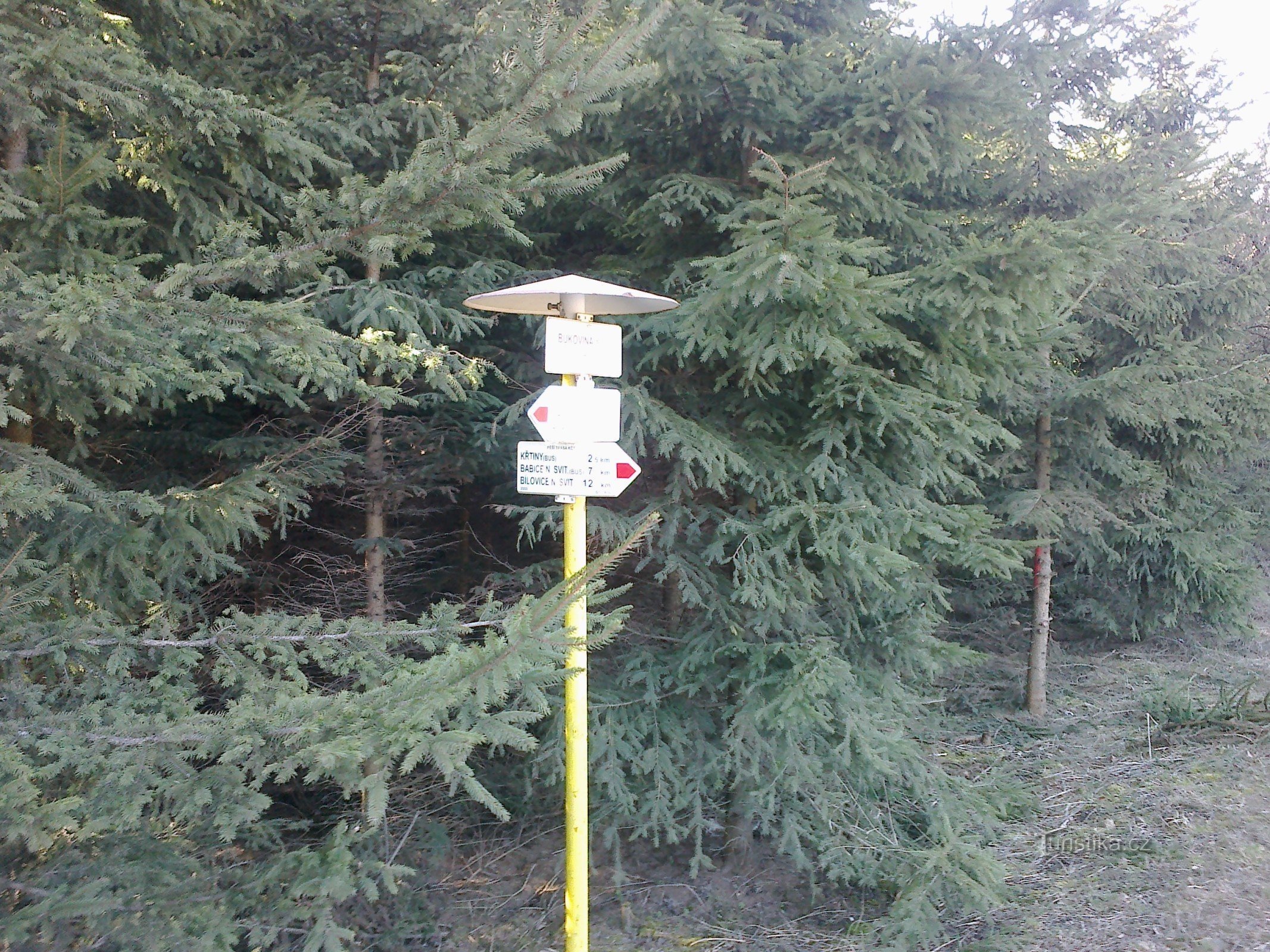 Toto rozcestí nalezneme na křižovatce silnice Březina – Křtiny při odbočce do Bukoviny. Je to rozcestí na červené turistické značce, která začala jen kousek odtud v Bukovince (4 km) a přišla sem přes Lhotky (1,5 km). Dále pokračuje do Křtin (2,5 km), Babic nad Svitavou (7 km), Bílovic na toutéž řekou (12 km) až do Brna - Obřan (16 km).