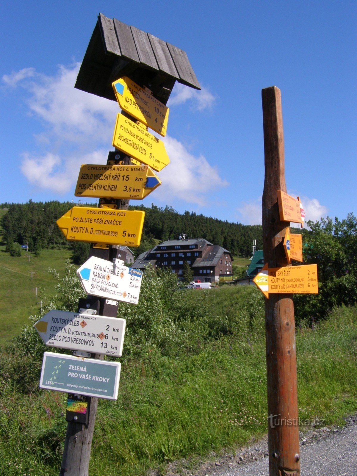 Turistický rozcestník, který se nachází u autobusové zastávky u hotelu v Červenohorském sedle, ukazuje turistům cestu do dvou směrů. Po modré značce ve směru Červenohorské sedlo - Skalní tabule, Kamzík a po značce žluté ve směru Kouty nad Desnou, Koutský žleb - Pekárka, Drátovna, Filipovice. Značeny jsou zde dále cyklotrasy KČT a lyžařské trasy.